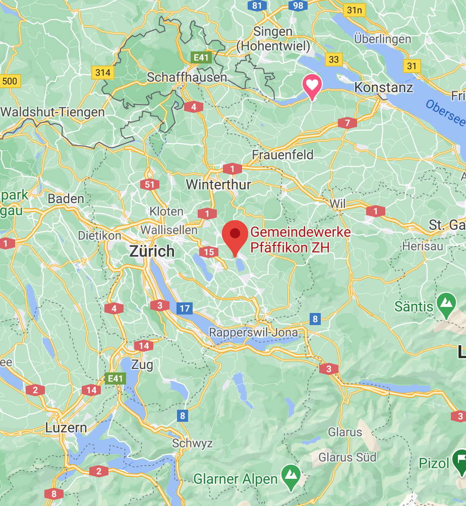 I live in Hittnau. My personal waste water is cleaning The ARA Pfäffikon. The adress from the ARA Pfäffikon is Schanzweg 2, 8330 Pfäffikon (see the map below). They clean the waste water from Hittnau, Bäretswil, Fehraltorf and Pfäffikon.
