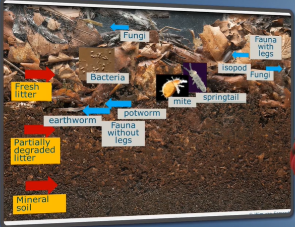 Soil organisms feed directly or indirectly on plant inputs and not all species like to eat the same thing. So the type of plant you grow, like the type of crop or green manure that you add to the soil, can all influence the abundance and diversity of the soil life.