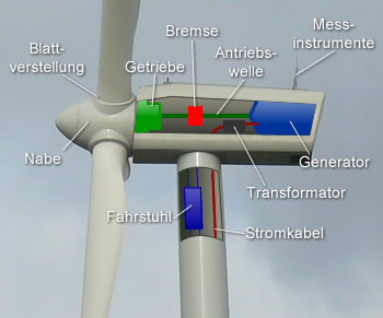 A wind turbine with a rotor blowing wind into energy. The wind causes the rotor to rotate - the "rotational energy" is then converted into electricity with the help of a generator, similar to a bicycle dynamo. From there, the electrical energy goes into the power grid. The height of the wind turbine is very important. The taller the turbine, the more evenly the wind blows and the more electricity can be generated.