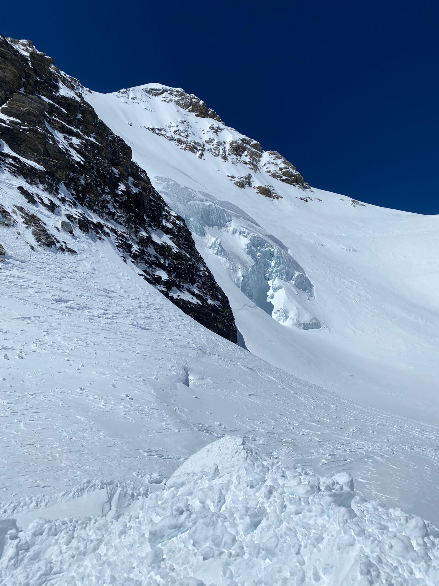 After that we went up to the last passable point of the glacier. There Daniel Farinotti took the rope to connect himself with the camera team and the guy of "La Priarie". Everybody used their harness and the snow shoes.