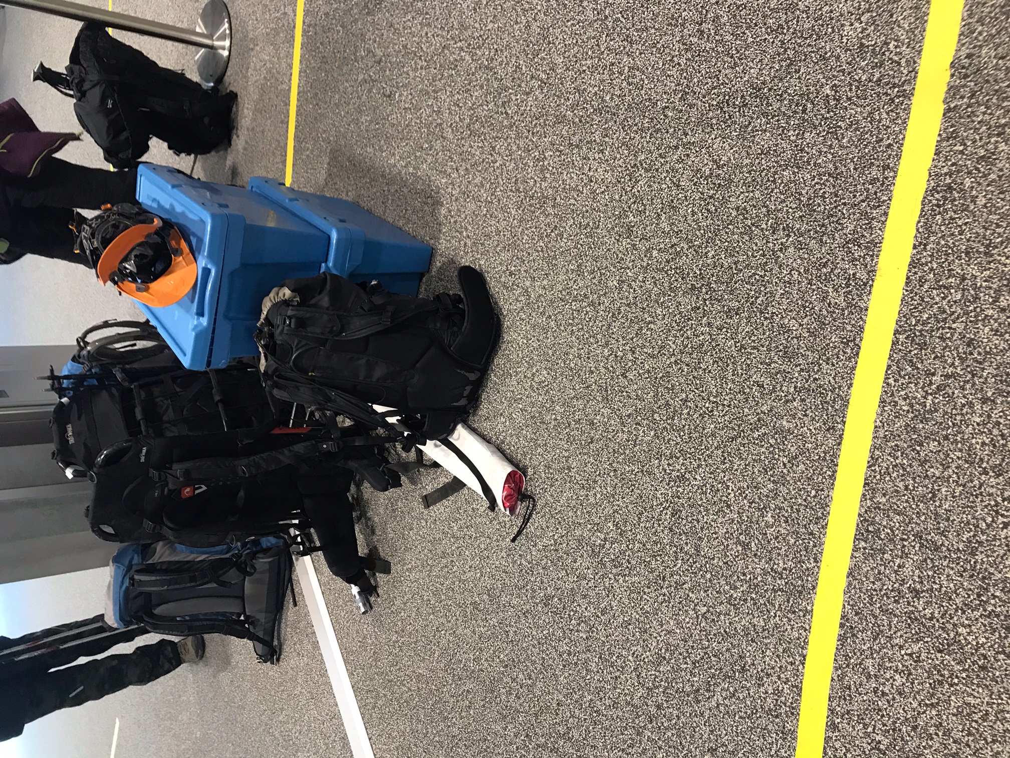 After a short walk we entered a special door that is only for the personal. There we had the possibility to organize the material. That means that we were given from Daniel Farinotti a harness, snow shoes and something for the researchers to put in the backpack.