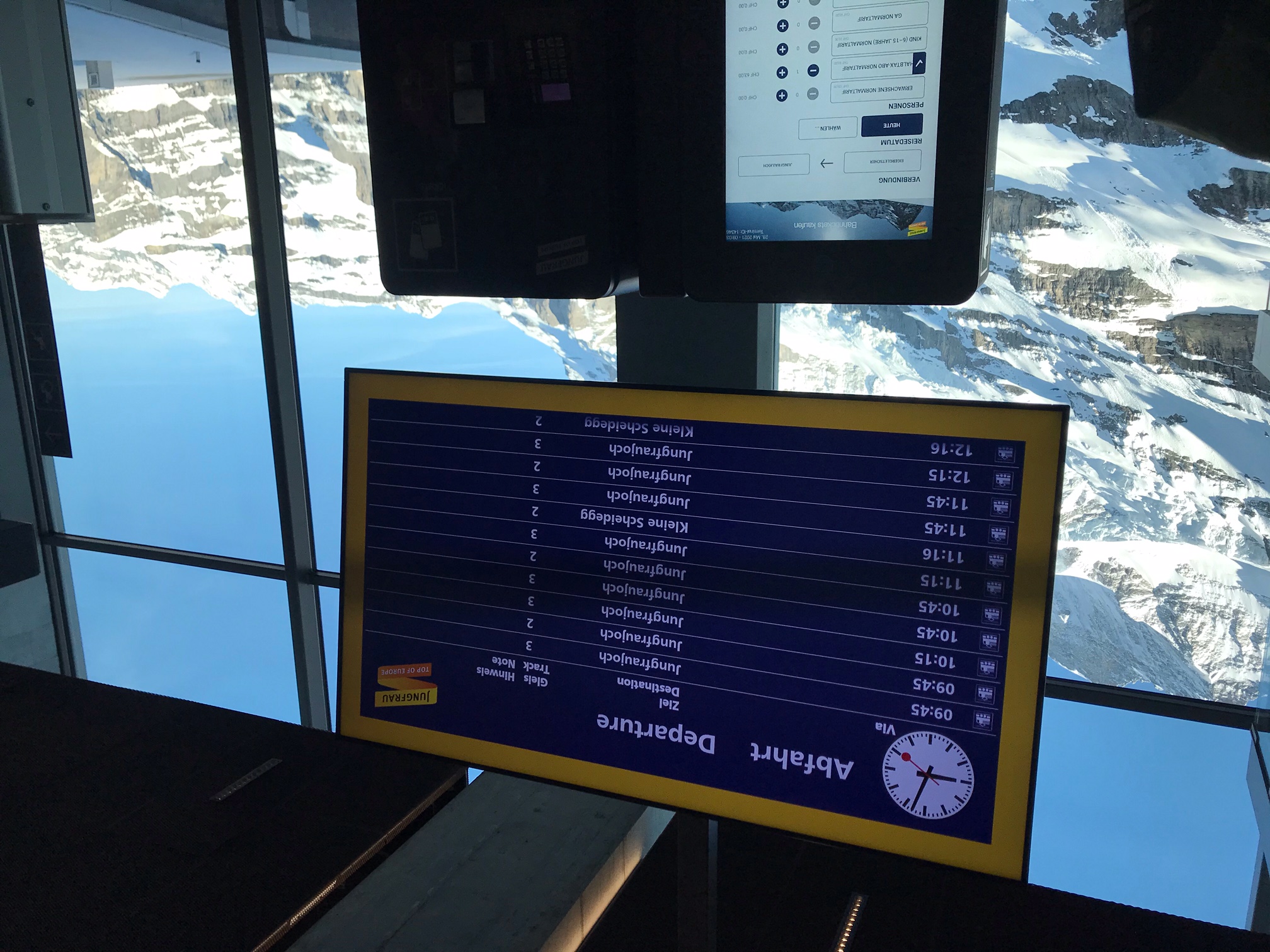 At 08:45 we took the gondola from "Jungfraujoch". On the gondola, we smalltalked with each other. Jane, that was from Washington, told us that she loved her study of glaciology at the ETH Zurich.