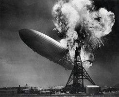 Elemental (molecular) hydrogen serves as a starting material to produce ammonia, hydrochloric acid (Salzsäure), methanol, aniline, and many other substances. It is used as a welding gas (Schweissgas). In the past, hydrogen was also used as a filler for balloons. However, in the Lakehurst disaster, a zeppelin named Hindenburg exploded in New York in 1937. This airship contained 200,000 m3 of hydrogen. A fire caused the entire airship to explode. 35 people lost their lives.