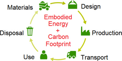 Embodied energy means all the energy used to manufacture a product. From production to disposal. All this energy is called embodied energy. The more complex the product is, the more energy is needed.